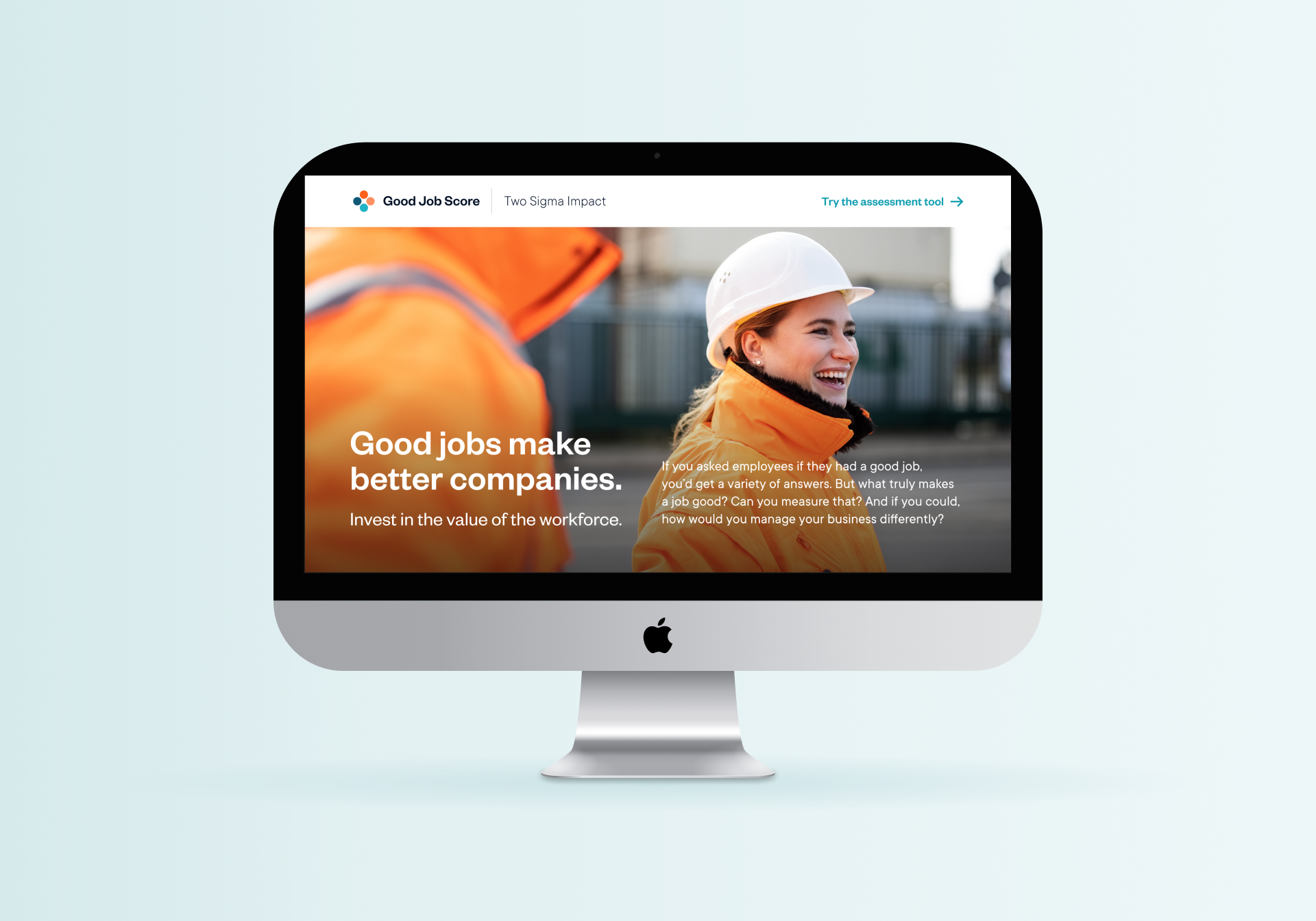 Expert – Trustworthy – Empathetic Logo and website design for fintech sub-brand offering a new tool. The tool uses employee submitted data to produce a "good job score" allowing conscious investors to ensure they support companies that care for their workforce. Designed at Cloudberry Creative.
